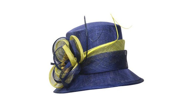 帽子整體采用比軟寧靜的秀場大熱的深蘭色,搭配明亮的黃色,大膽而不張揚,優(yōu)雅的貴族氣息。