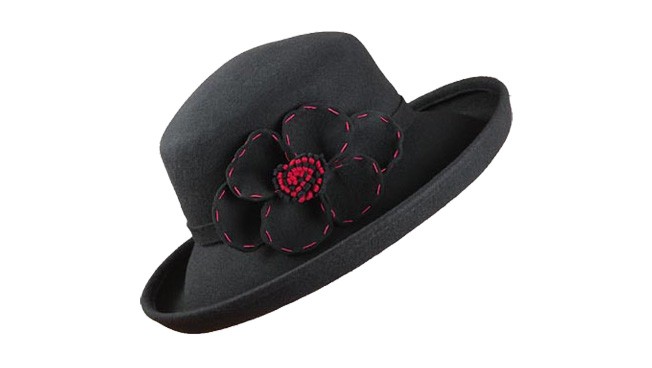 100%純羊毛的帽子,卷邊的大帽檐設計,透出一種厚實感,顯得十分的保暖。